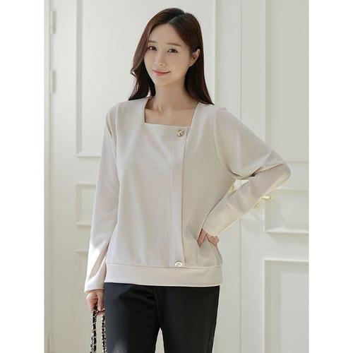 [드리다]스퀘어넥 버튼 빅사이즈 스판 긴팔 티 블라우스 하객 모임 상견례 40-50대 미시 중년 엄마옷