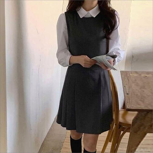 여자 단정한 하객룩 라운드넥 플리츠 A라인 민소매 원피스 2색 WFKN9IT