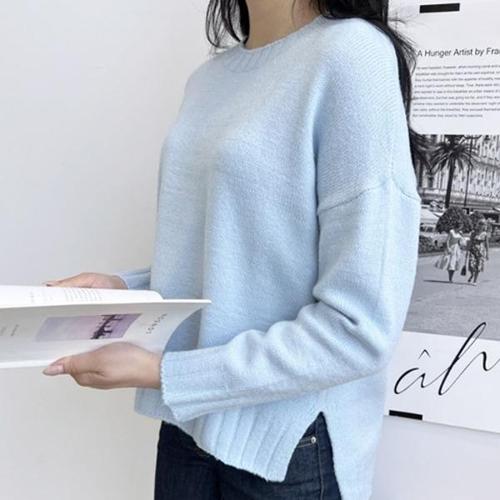 [엄지척]여자 하늘색 라운드넥 니트 옆트임_19682180_667501