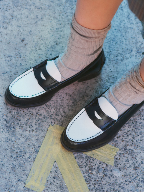 HARUTA 하루타 남성용 소가죽 페니로퍼 블랙 화이트 906-BLWH
