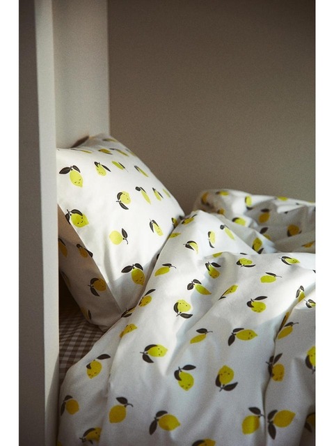 [에이치엔엠] 패턴 싱글 이불커버 & 베개커버 화이트/레몬 1225283004