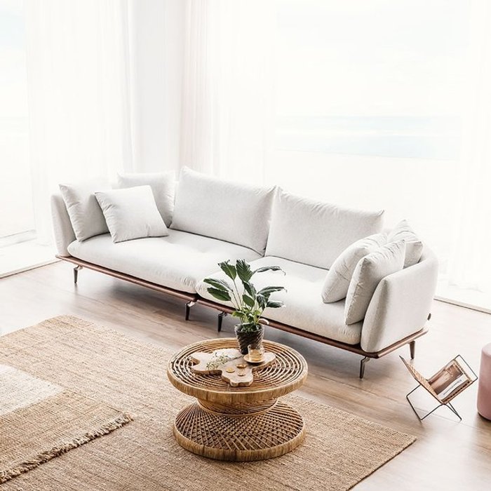 봄소와 [단독] [5만원 상품권] 아리아 4인용 서브 테이블형 노르딕 패브릭 원목소파