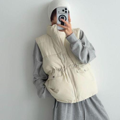 [옷자락] 여자 푸퍼 스트링 포켓 하이넥 집업 겨울 패딩 조끼