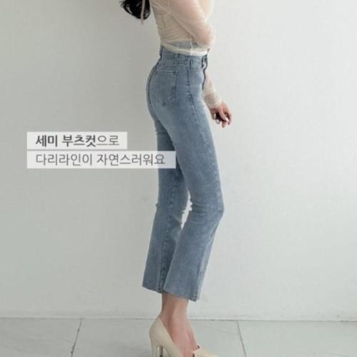 [다잇템][다잇템] 여성용 하이레그 세미부츠 라이트블루 데님팬츠_23330356_588872