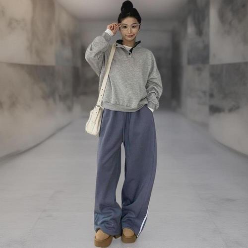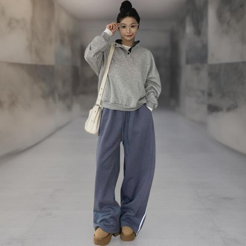 [옷자락]여성 스냅버튼 컬러 배색 하이넥 루프핏 티셔츠