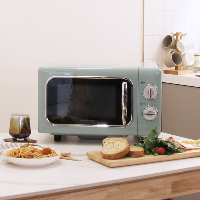 쿠잉 쿠잉 레트로 플랫전자레인지 MC-R20FL 민트 20L 전자렌지 무회전 소형 미니 원룸