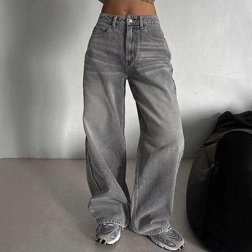 [에이치플러스몰]여성 그레이진 하이웨스트 루즈핏와이드청바지