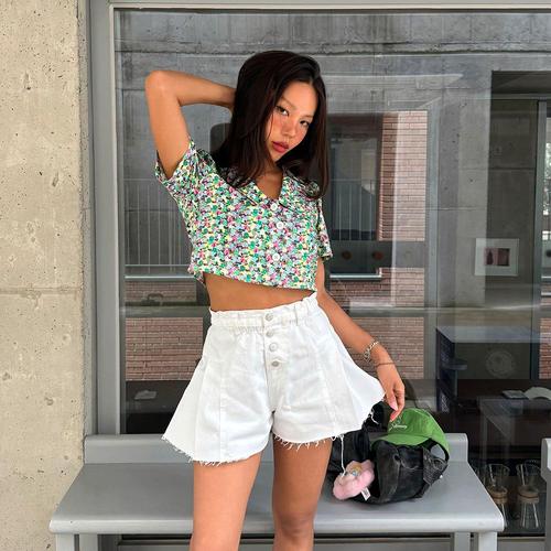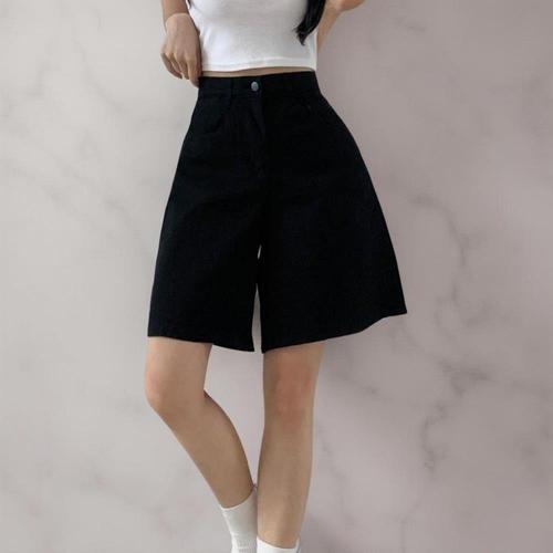 여자 핀턱 단추 하이웨이스트 컷오프 반바지