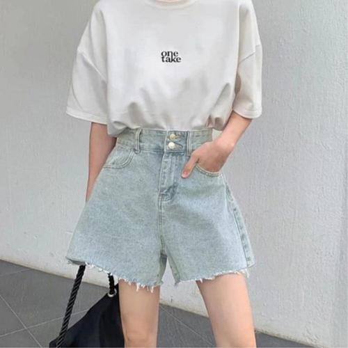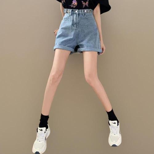 [다잇템_패션]여성용 하이웨스트 진 폴딩 핫팬츠 더블버튼
