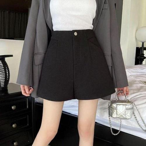 [셀러허브_여성트랜드패션]ONM 여성 블랙 하이웨스트 숏팬츠 반바지 하객룩 데일