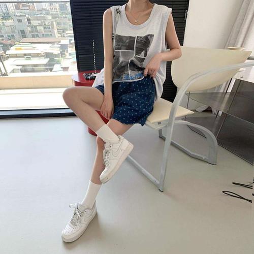 [다잇템]여성용 하이웨이스트 도트 캐쥬얼 핫팬츠 패턴