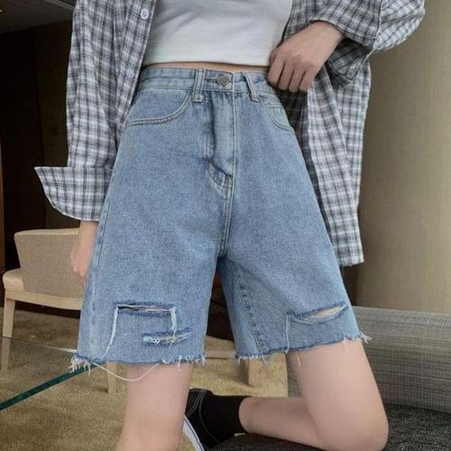 [셀러허브_여성트랜드패션]ONM 여자 캐주얼 하이웨스트 데미지 워싱반바지 하프팬