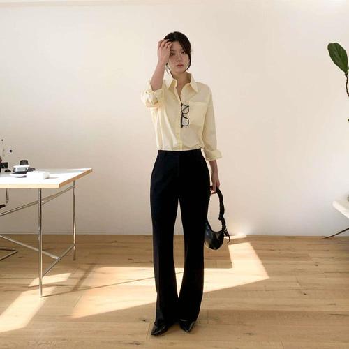 [옷자락]여자 찰랑 정장바지 투버튼 하이웨스트 부츠컷 슬랙스