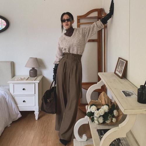 [다잇템]여자 핀턱 하이웨이스트 넓은 슬랙스(벨트 SET)