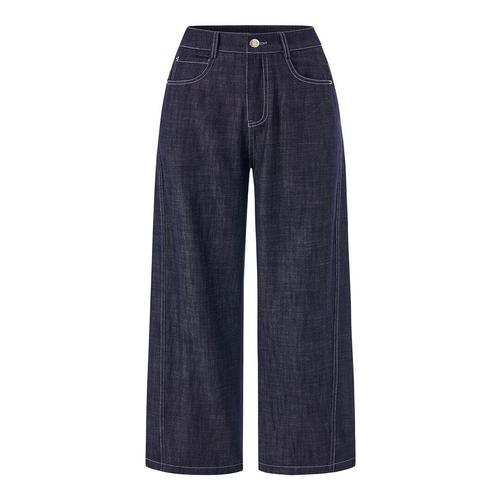 하이웨이스트 와이드 레그 얇은 데님 반바지 여성 여름 패션 루즈핏 청바지 카프리 길이 텐셀 소재 블루 컬러