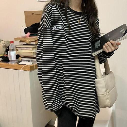 [셀러허브_여성트랜드패션]Rly 하이틴 꾸안꾸 오버핏 스트라이프 단가라 긴팔티