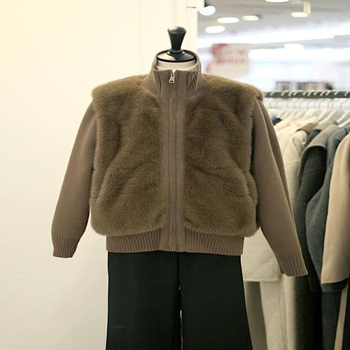 [메종블랑쉬]르피타 페이크 퍼 믹스 하이넥 니트 집업 점퍼 ARAL254BJPB02