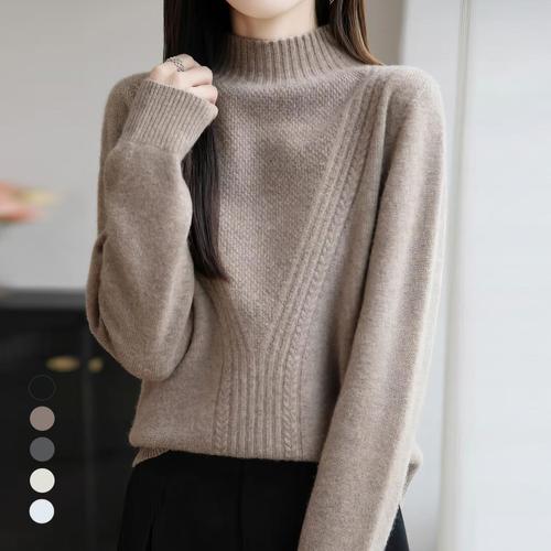 [팬텀] 여성 소재 믹스 라인 포인트 하이넥 긴팔 니트