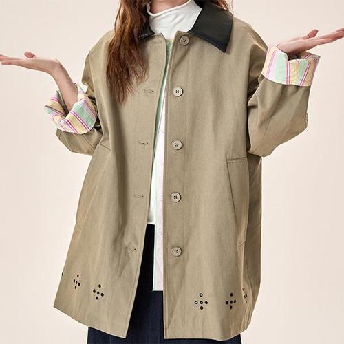 [패션시그널]싱글버튼락 배색소매 트렌치하프코트 7E3B87