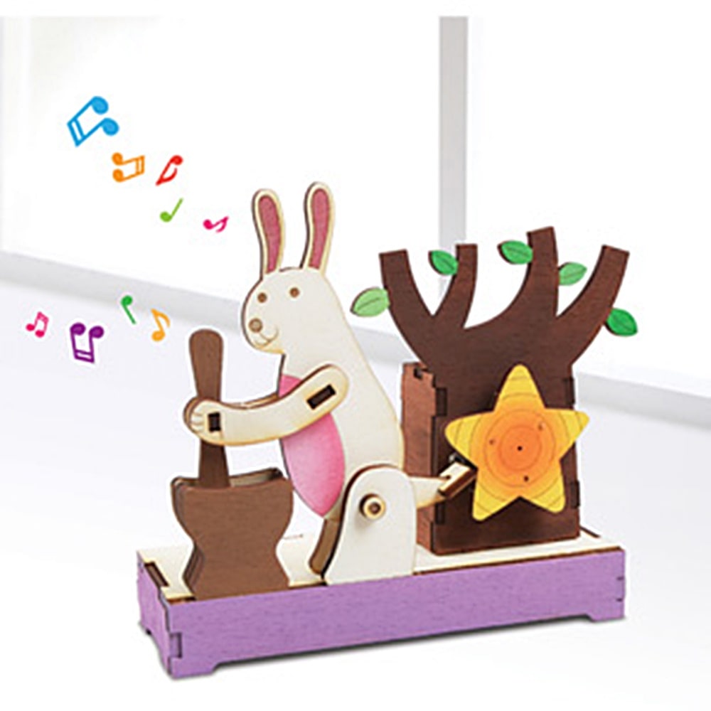 DIY 나무 모형 조립 키트 태엽 오르골 절구 찧는 토끼 YM-946