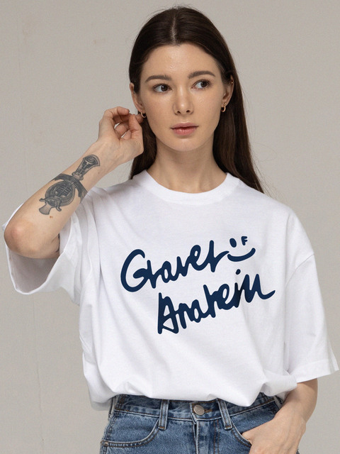 [그레이버] [UNISEX]드로잉 로고 스마일 반팔티_화이트