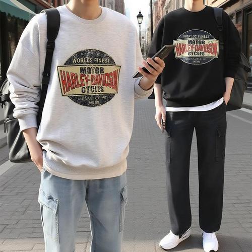 [지지블랙][1+1] 어깨가 넓어보이는 할리 프린팅 오버핏 맨투맨 티셔츠 ZZBMT044
