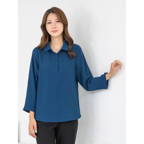 [모슬린]엄마옷 카라 반오픈 무지 주름블라우스 MQG124648 마담 미시 중년여성 빅사이즈 할머니옷 50대 6..