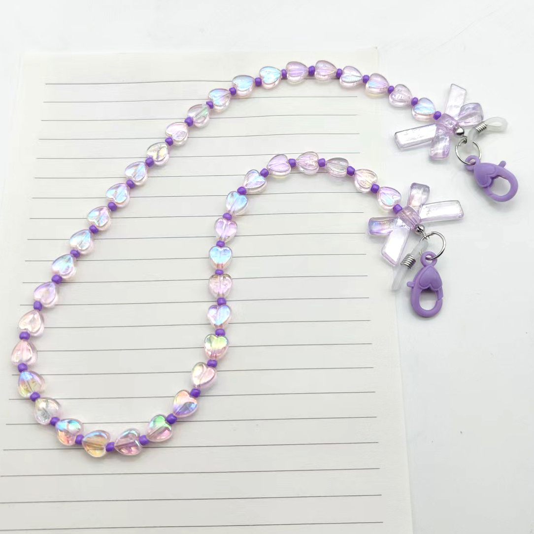 TEMU 무지개 빛깔 퍼플 하트 모양 안경 목걸이 - 짧은 안경 끈, 안전 잠금 장치, 내구성 & 스타일리시 안경 홀더, 일상 패션 액세서리 (멀티컬러)