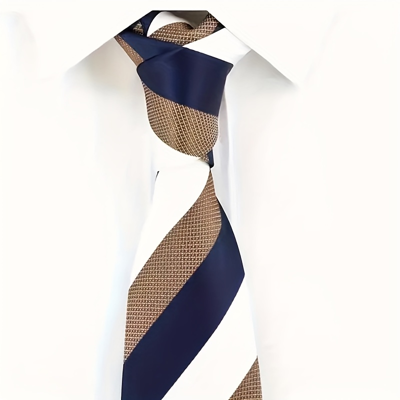 TEMU 남성용 영국 스타일 넥타이 - 네이비 블루 & 화이트 수직 줄무늬, 클래식 비즈니스 스타일, 폴리에스터 원단, 사무실이나 공식 행사에 완벽