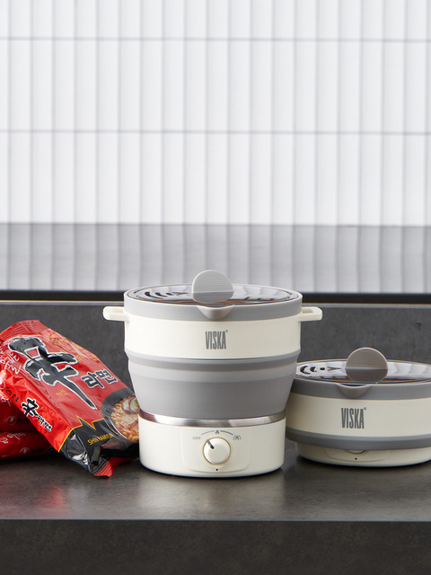 위즈웰 휴대용 접이식 여행용 전기 포트 냄비 캠핑 주전자 라면 햇반 멀티 쿠커 해외 찜기 WK3616