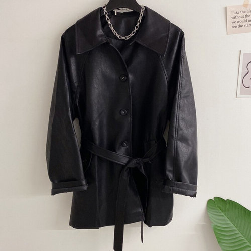 허니제이 / 벨트세트 사론티 카라 버튼 포켓 레더 하프 코트(2color)