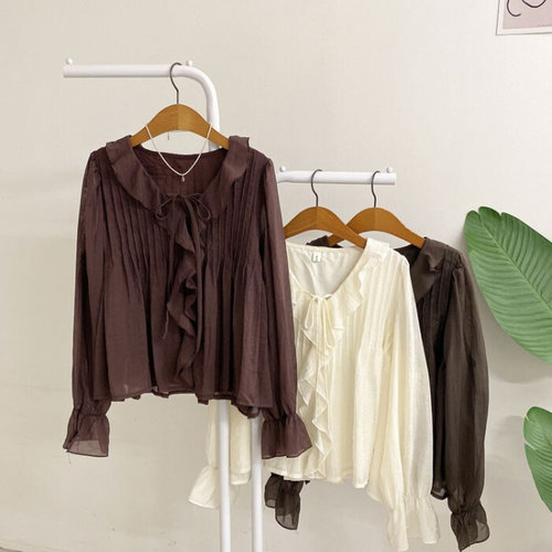 허니제이 / 포테토 반하이 플리츠 긴팔 블라우스(4color)