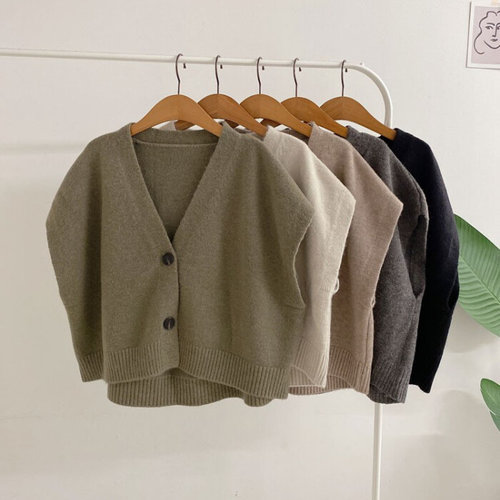 허니제이 / 코지티 브이넥 투버튼 루즈핏 니트 조끼(5color)