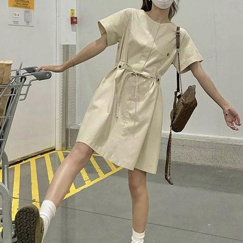 [셀러허브_여성트랜드패션]ONM A라인 원피스 허리스트링 하트 포켓 심플 여성
