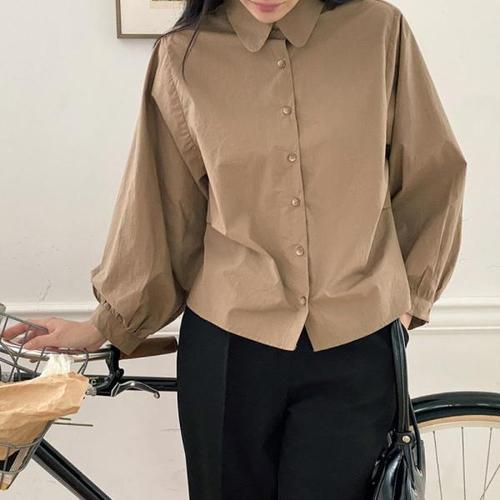 라라온 링클프리 베이직 크롭 카라넥 셔츠 블라우스 TSP2746