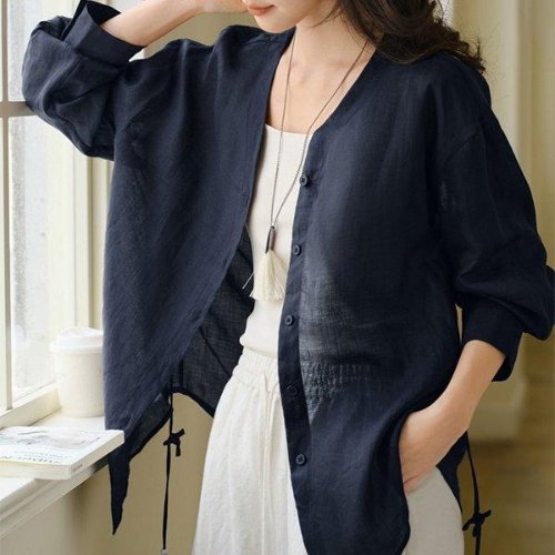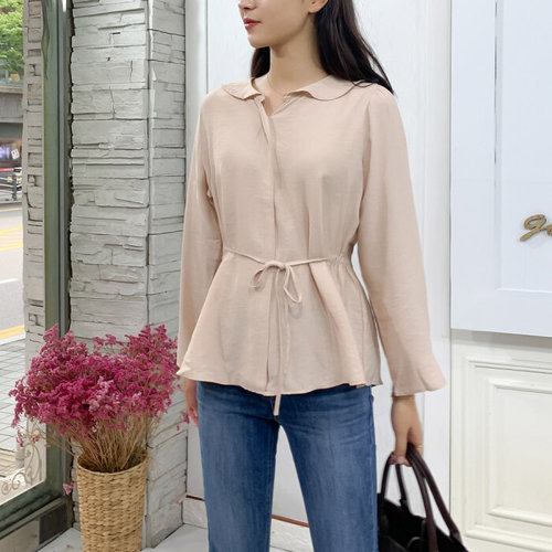 샵앤) 여성 간절기 카라넥 앞포켓 허리 스트링 블라우스 셔츠 CAT-WBL-4164-소라