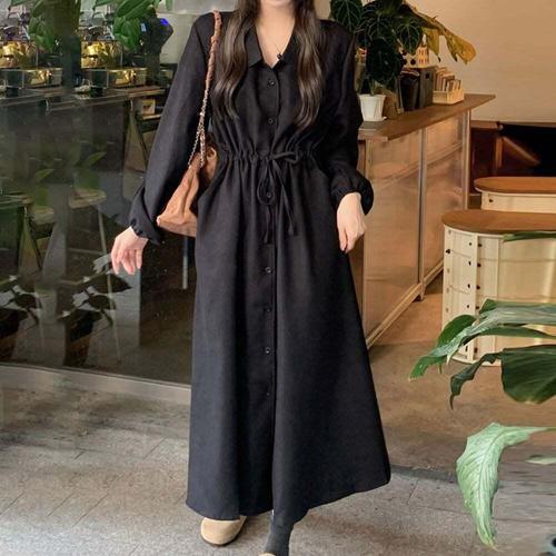 [모노무드]모노무드 코듀로이 셔츠 롱원피스 군살 커버 허리스트링 카라넥