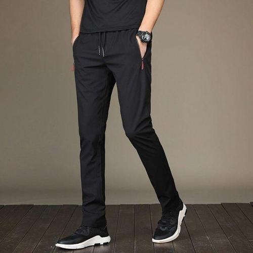 지퍼디테일 엠브로이드 로고포커스 남자 허리밴딩 일자팬츠 스타일