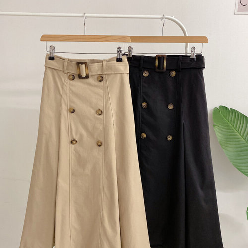 허니제이 / 벨트세트 케포릿 버튼 트렌치 허리밴딩 롱 스커트 (2color)