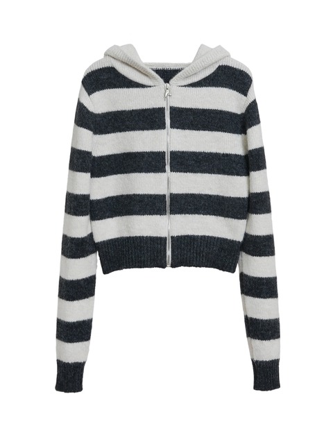 [리히트] 심볼 스트라이프 니트 집업_아이보리