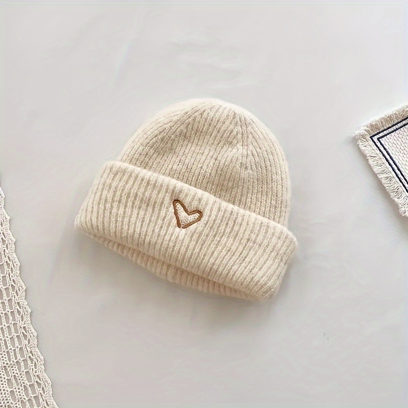 TEMU 모자, 여아용 겨울 따뜻한 비니, 여아용 자수 하트 모자, 귀여운 스타일 니트 방한 모자