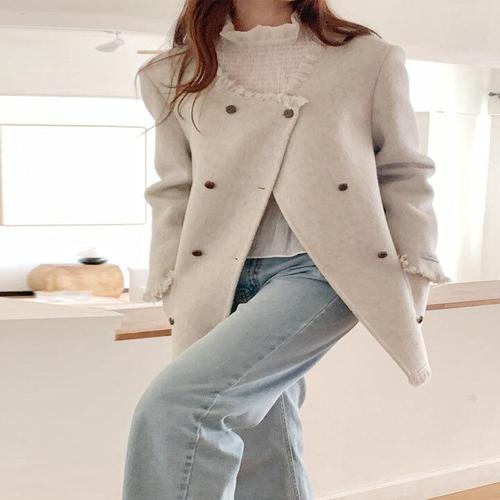 [헤레이스](울100%)라운드 수술 핸드메이드 자켓_YMSH26SS113