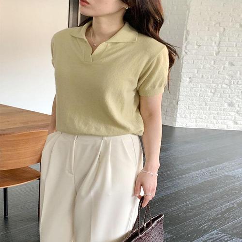 [헤레이스]캐시미어 카라 반팔니트_YMSH26SS099
