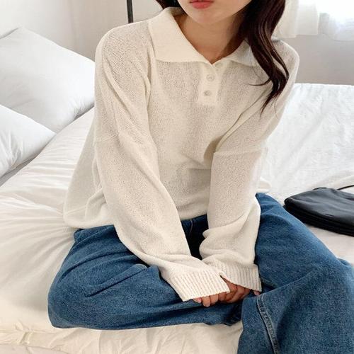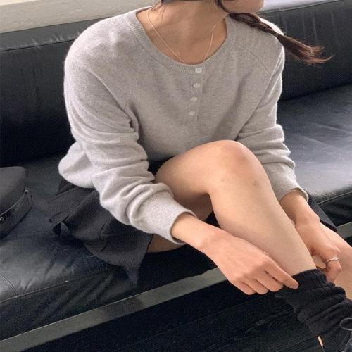 [헤레이스]라운드 버튼 캐시미어 니트_YMSH26SS096