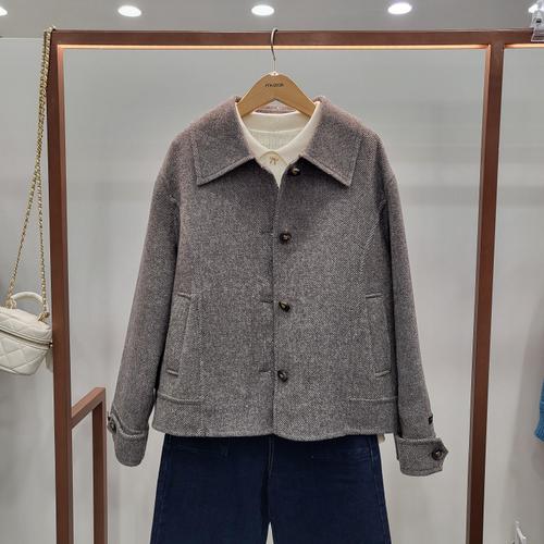 삼제태전 남성 모직 코트 숏코트 헤링본 패턴 미니멀 비즈니스 슬림핏 수트 자켓