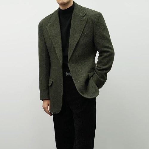 [옷자락] 남자 브레스티드 싱글버튼 클래식 헤링본 하객룩 자켓