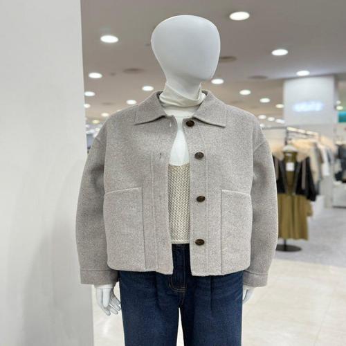 [바이어스]여자 카라넥 싱글 울 헤링본 숏 핸드메이드 코트 (11441111)