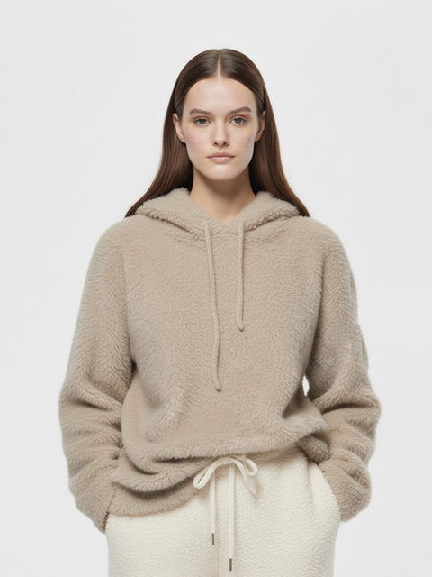 [챈세스노이 포 우먼] 앙고라 헤이리 니트 후디드 (블랙,크림)/W254TP04