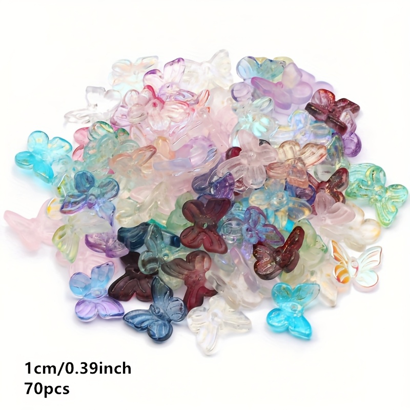 TEMU 70개 유리 나비 비즈, 주얼리 제작에 적합 (목걸이, 팔찌, 귀걸이 포함), 참 팔찌 추가에 완벽