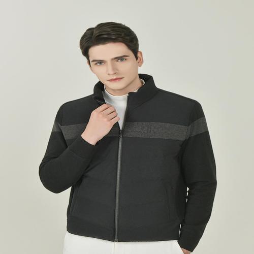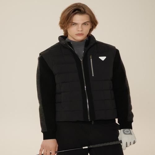 헤지스 골프 블랙 남성 니트 하이브리드 풀집 구스다운 점퍼 (HUSW4D772BK)